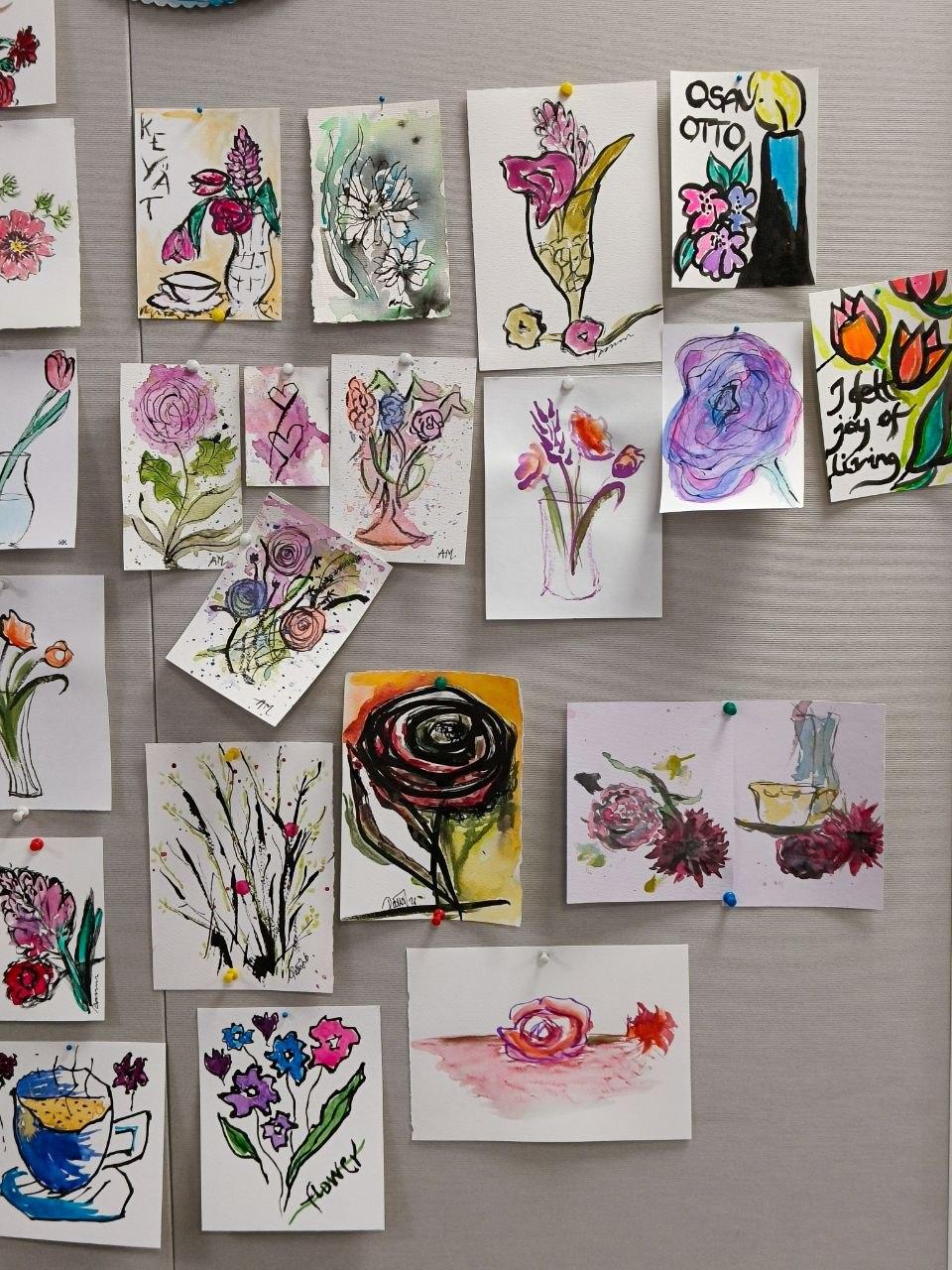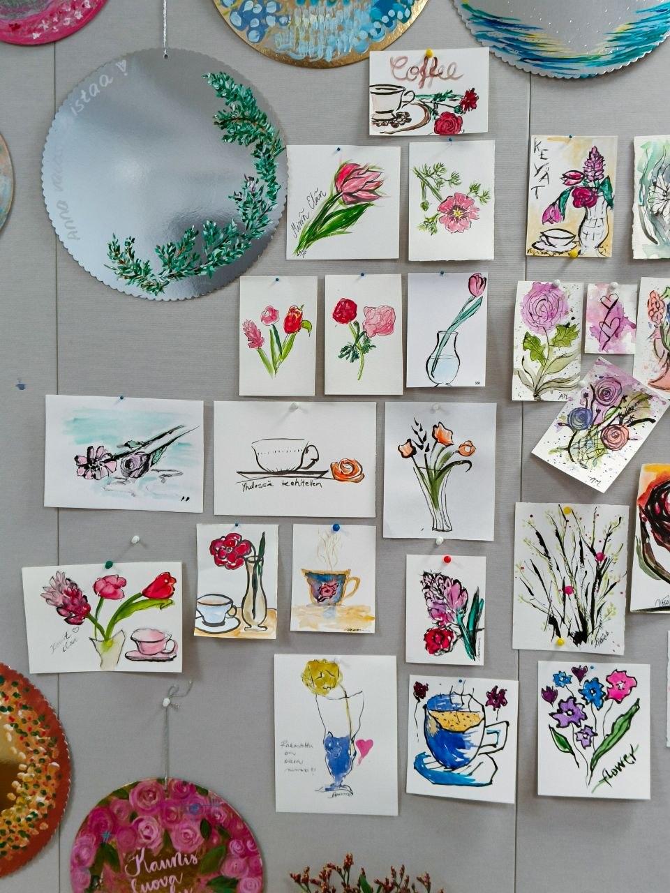 Seinäjoella, josta myös oheiset kuvat ovat peräisin, saimme asettua kolmen uuden taidemenetelmän äärelle Ulla Anttilan ja Idi Liljan johdattamina tarkastellen kuinka menetelmät soveltuisivat mukaan aiempien yhdessä testattujen ja hyviksi todettujen menetelmien rinnalle. Tarkastelimme niitä muun muassa moniaistisuuden, vaiheittaisuuden ja vuorovaikutuksen toteutumisen kautta. Huone pulppusi arvokkaita ajatuksia ja näkökulmia.